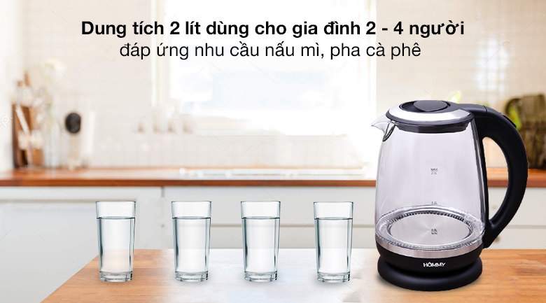 Bình siêu tốc Hommy 2 lít HHB2018 thiết kế đẹp mắt, chất liệu tốt, bền bỉ, công suất lớn cùng tính năng tự ngắt khi nước sôi đáp ứng nhu cầu sử dụng nước nóng và an toàn cho người dùng.