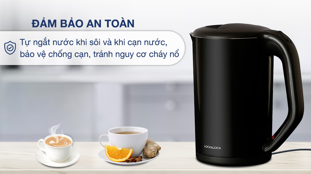 Sử dụng bình đun siêu tốc Lock&Lock an toàn hơn với chế độ tự ngắt khi nước sôi và khi cạn nước, đảm bảo an toàn cho người sử dụng, hạn chế việc cháy nổ.