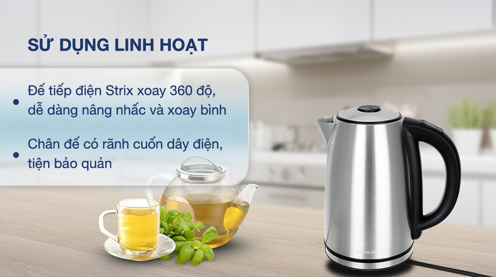 Mẫu bình đun siêu tốc Lock&Lock EJK136SLV này có thể điều chỉnh nhiệt độ sôi ở 4 mức độ, đáp ứng được đa dạng nhu cầu sử dụng nước nóng.