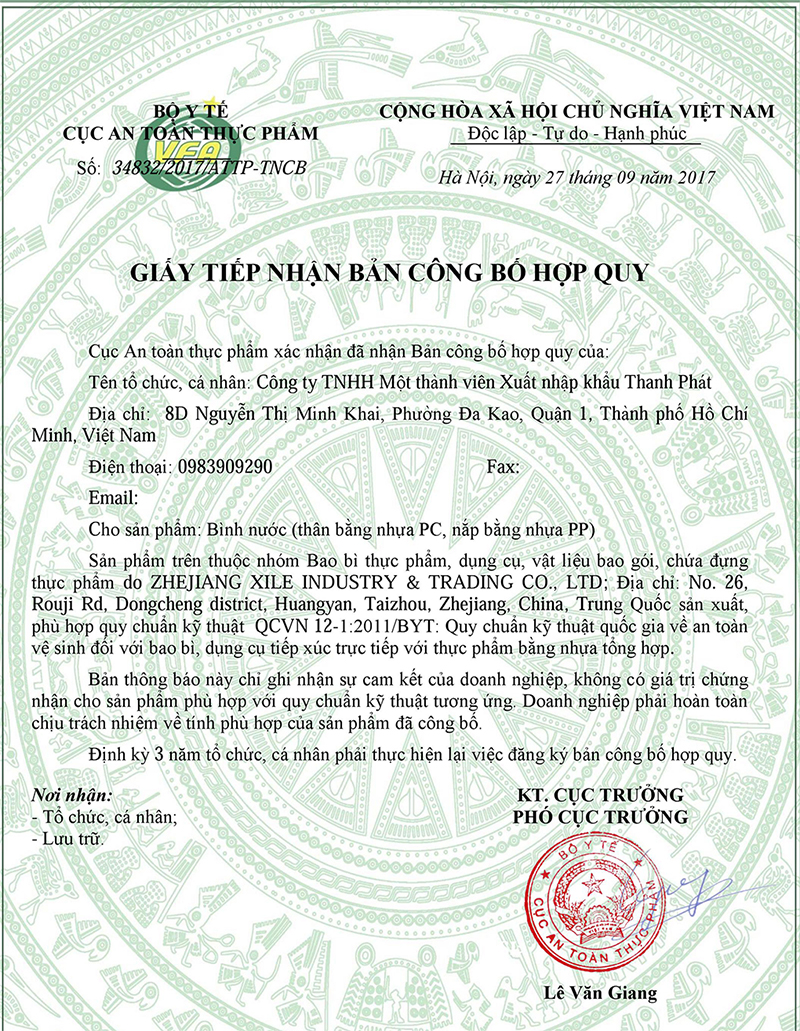 Giấy chứng nhận chất liệu an toàn với sức khỏe người tiêu dùng