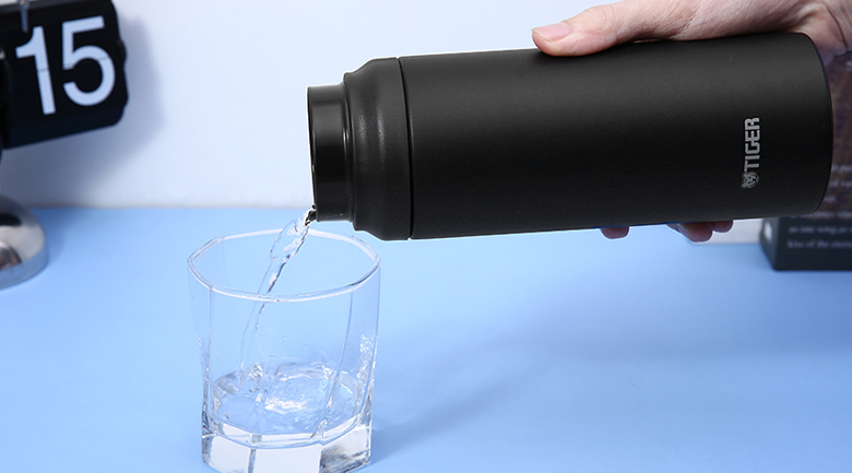 - Bình giữ nhiệt Tiger có tay cầm nghiêng có thể đem theo dễ dàng.