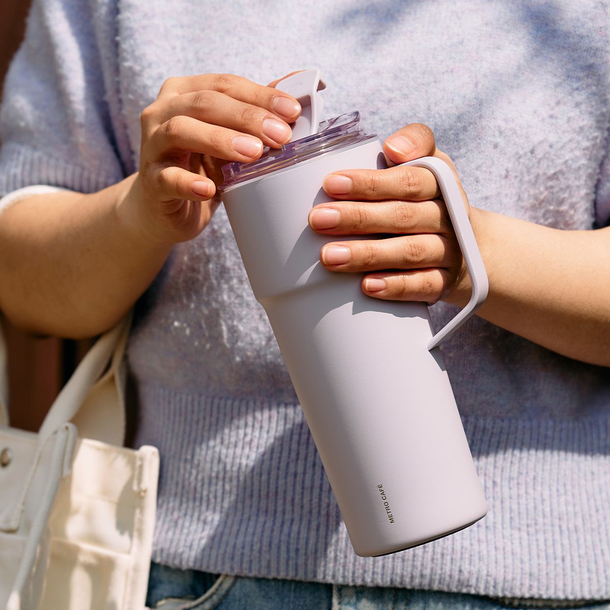 Bình giữ nhiệt Inox 750 ml Lock&Lock Metro Cafe Handle LHC4418LVOL sở hữu dáng trụ gọn gàng, mang sắc tím thơ mộng vừa trẻ trung vừa tinh tế, dễ dàng tạo điểm nhấn trong mọi không gian.