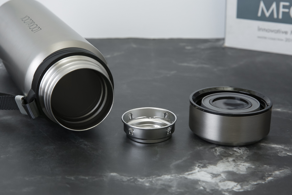 - Bình giữ nhiệt có lưới lọc trà đảm bảo nước trà rót nước trong, sạch, đi kèm quai xách dẻo dai, an tâm khi thao tác.