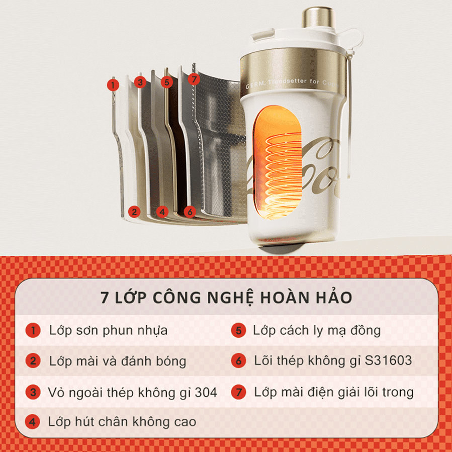 Ly giữ nhiệt GERM GE-CK24AW-B82 nổi bật với kết cấu 7 lớp, tối ưu hóa khả năng giữ nhiệt. Sản phẩm có thể giữ nóng từ 6 – 9 giờ và giữ lạnh từ 8 – 10 giờ, giúp bạn thưởng thức đồ uống yêu thích ở nhiệt độ mong muốn suốt thời gian dài. Đây là một lựa chọn lý tưởng cho một chiếc bình giữ nhiệt đa năng.