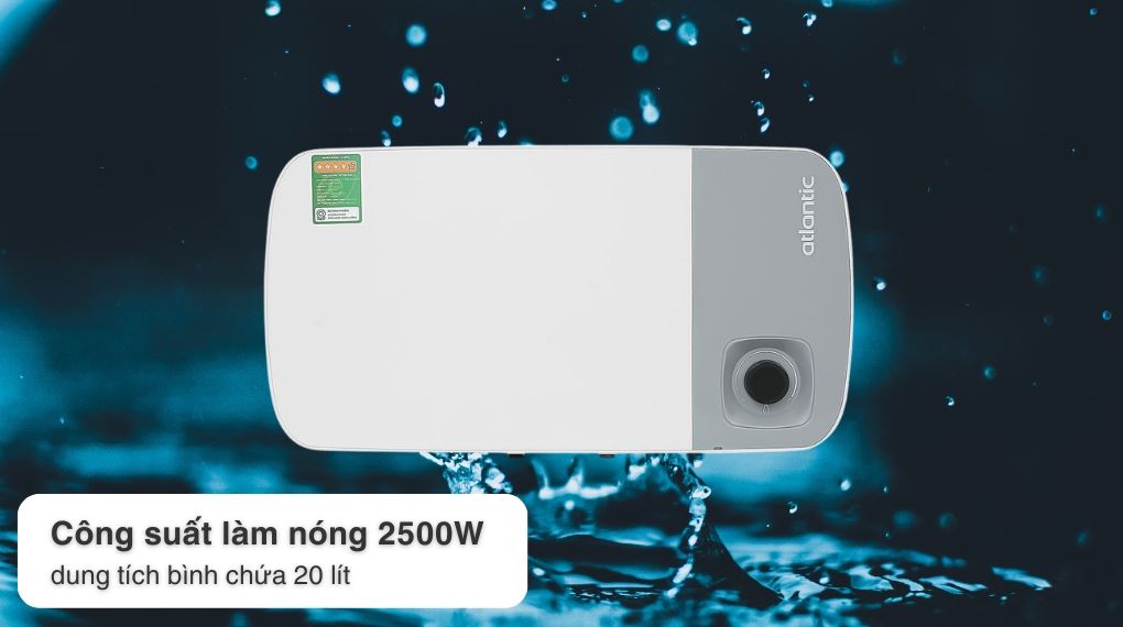 - Máy nước nóng gián tiếp Atlantic có công suất hoạt động 2500W, cho khả năng làm nóng nước đến nhiệt độ tối đa 70°C (± 5°C).