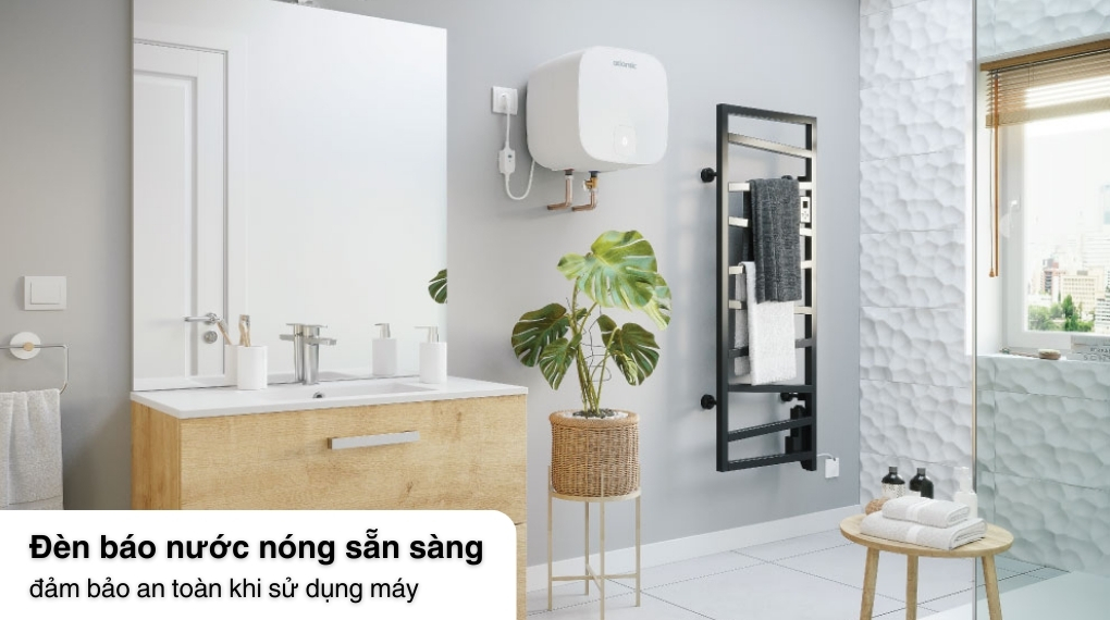 - Máy nước nóng Atlantic được trang bị đèn báo nước nóng sẵn sàng hình giọt nước trực quan, giúp người dùng dễ dàng nhận biết khi nhiệt độ nước đã sẵn sàng để sử dụng mà không cần phải thử trực tiếp hay kiểm tra nhiều lần, giúp tiết kiệm thời gian và đảm bảo an toàn cho bạn trong quá trình sử dụng máy.
