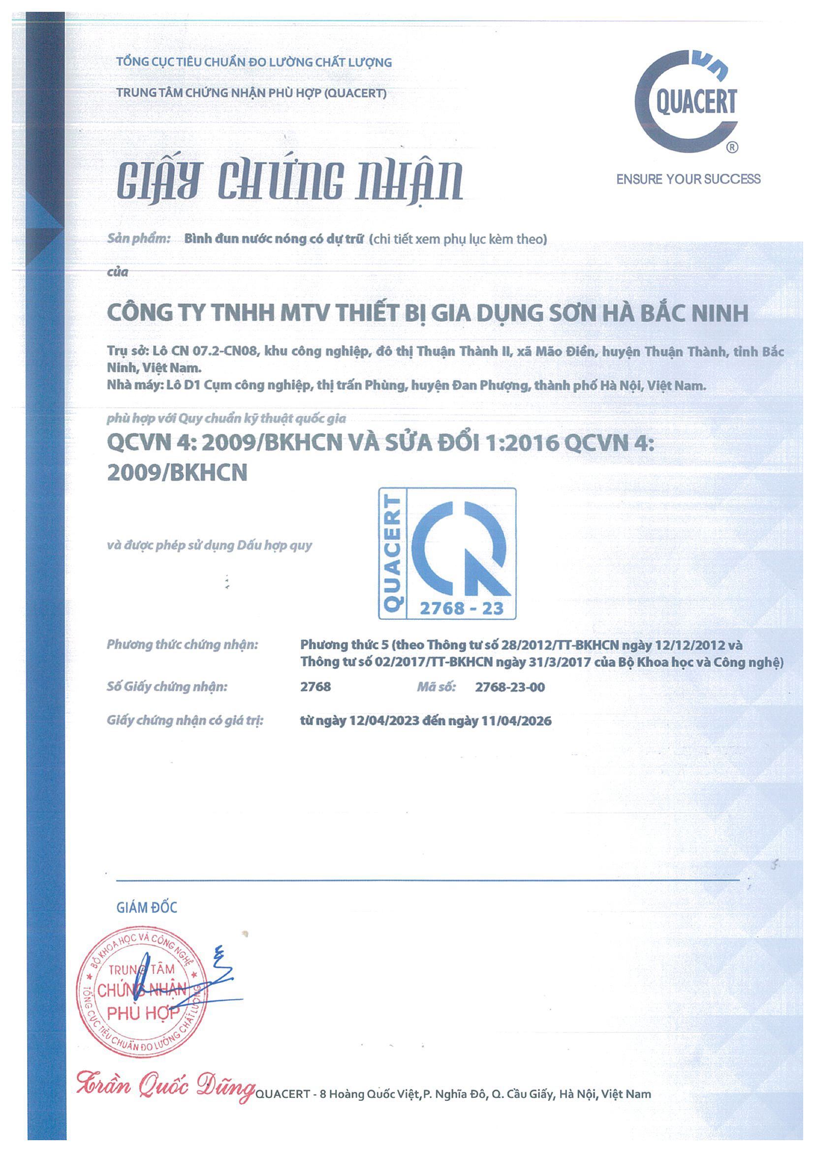 Giấy chứng nhận sản phẩm bình nóng lạnh Sơn Hà có sự khác nhau về mã R&D trên tem và mã trên tên sản phẩm.