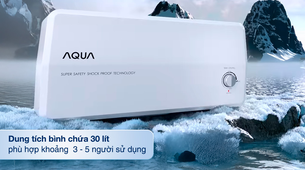Máy nước nóng gián tiếp Aqua 30 lít 2500W AES30H-SUPER là lựa chọn phù hợp cho gia đình khoảng 3 - 5 người cần nguồn nước nóng dùng dần, chú trọng đến các yếu tố an toàn như Shock Proof, hệ thống ổn định nhiệt kép TTS, lớp cách nhiệt PUF và công nghệ kháng khuẩn trong quá trình sử dụng hằng ngày.