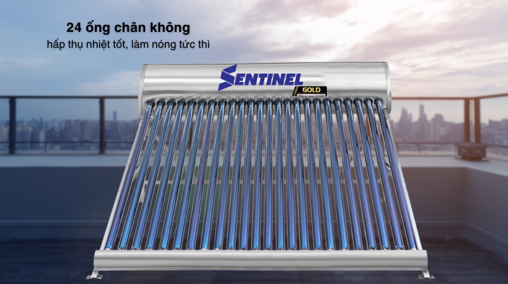 - Bình nóng lạnh Sơn Hà được trang bị 24 ống chân không dài 180 cm, đường kính Ø58 mm, có khả năng hấp thụ nhiệt nhanh từ ánh nắng mặt trời.