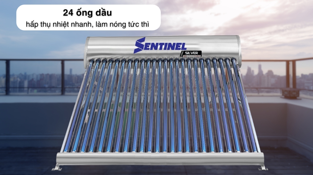 Máy nước nóng năng lượng mặt trời Sơn Hà 240 lít Sentinel Silver 58-240T là thiết bị phù hợp cho gia đình từ 4 đến 5 người với nhu cầu sử dụng nước nóng ổn định mỗi ngày. Sản phẩm sử dụng công nghệ ống dầu giúp truyền nhiệt hiệu quả, kết hợp thiết kế chắc chắn và khả năng giữ nhiệt dài lâu.