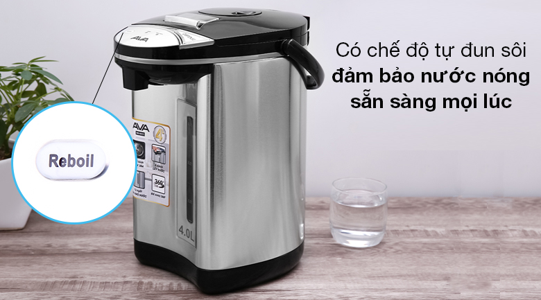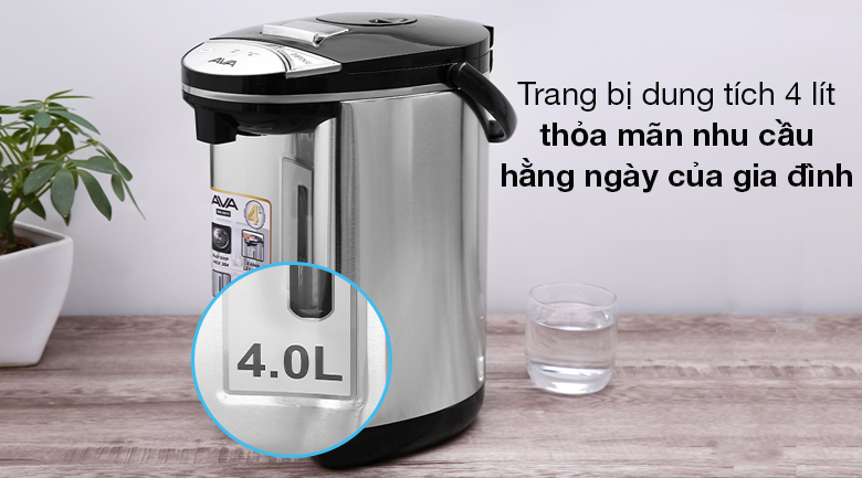 Bình thủy điện AVA NK-A611 4 lít có thiết kế hiện đại, dung tích 4 lít, công suất 730W, lấy nước dễ dàng theo 3 cách, sử dụng an toàn, tiện lợi, đáp ứng nhu cầu nước nóng trong gia đình.