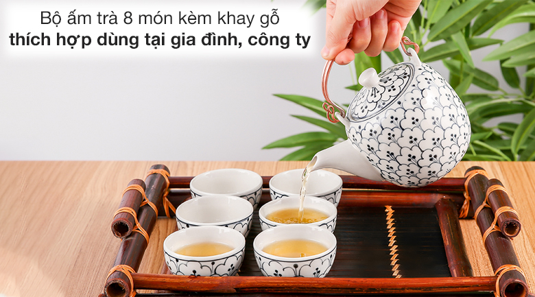 Bộ ấm trà kèm khay gỗ 8 món UNC FTS17 10 Hoa bèo thiết kế mang đậm nét văn hóa truyền thống, tinh tế và độc đáo, tạo điểm nhấn cho không gian, chất liệu đất sét và sứ cao cấp, giữ nhiệt tốt, an toàn cho sức khỏe, phù hợp dùng tại gia đình, công ty,...