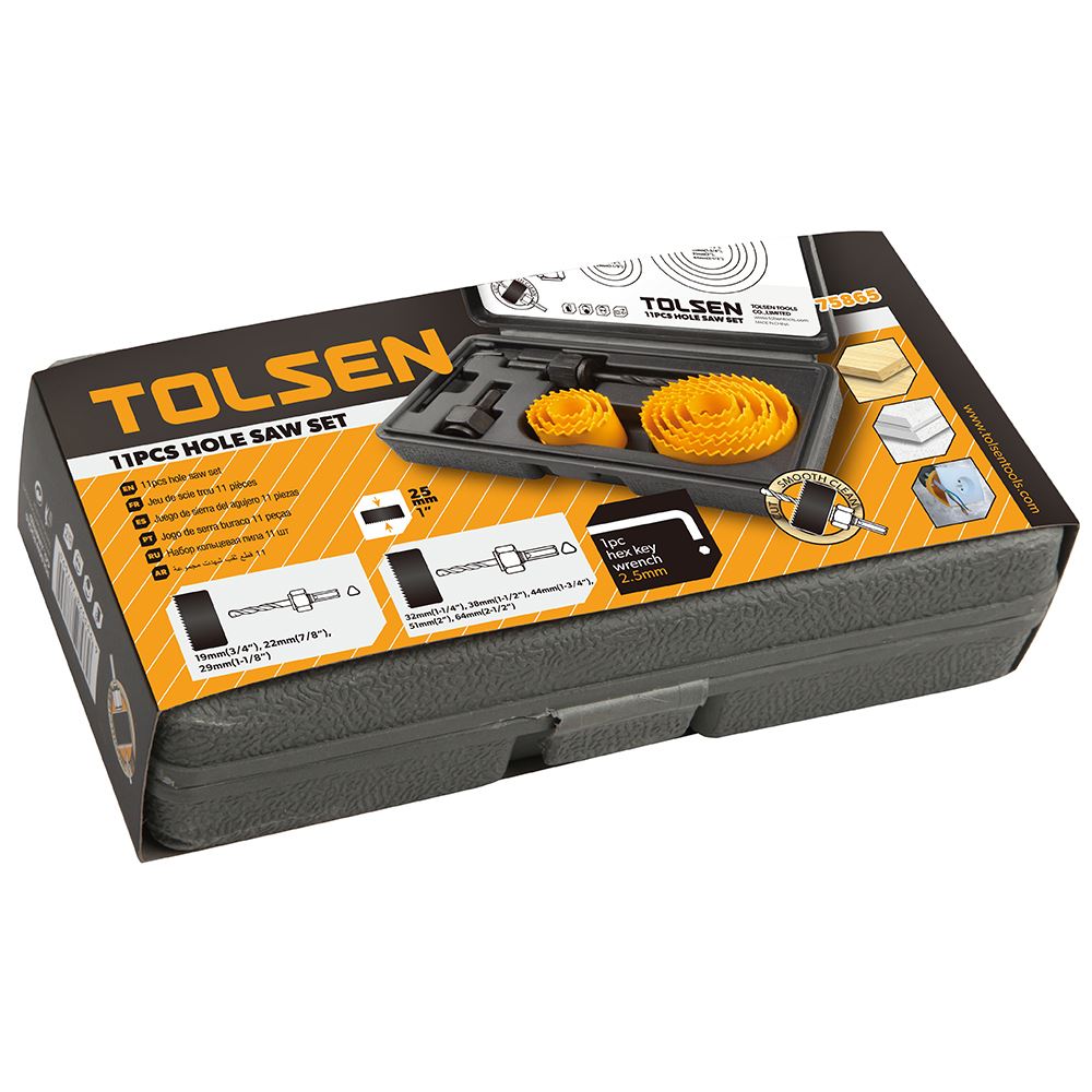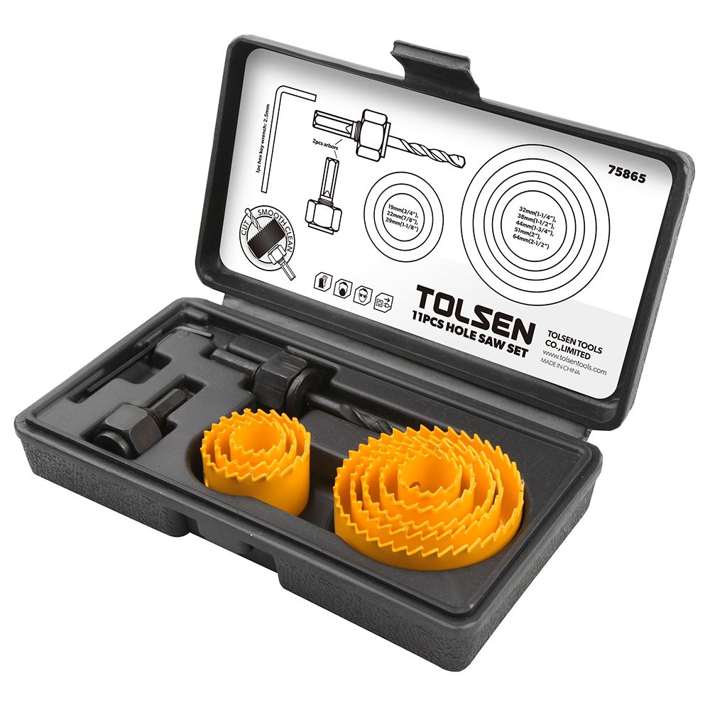 Bộ mũi khoét 11 món Tolsen 75865 là trợ thủ đắc lực cho các công việc khoan, khoét lỗ và gia công vật liệu trong xưởng mộc, cơ khí hay sửa chữa. Với thiết kế gọn gàng, chất liệu hợp kim thép bền chắc và độ sắc bén cao, bộ dụng cụ này mang đến hiệu quả làm việc tối ưu, đáp ứng nhu cầu của cả thợ chuyên nghiệp lẫn người dùng gia đình yêu thích DIY - tự tay làm lấy.