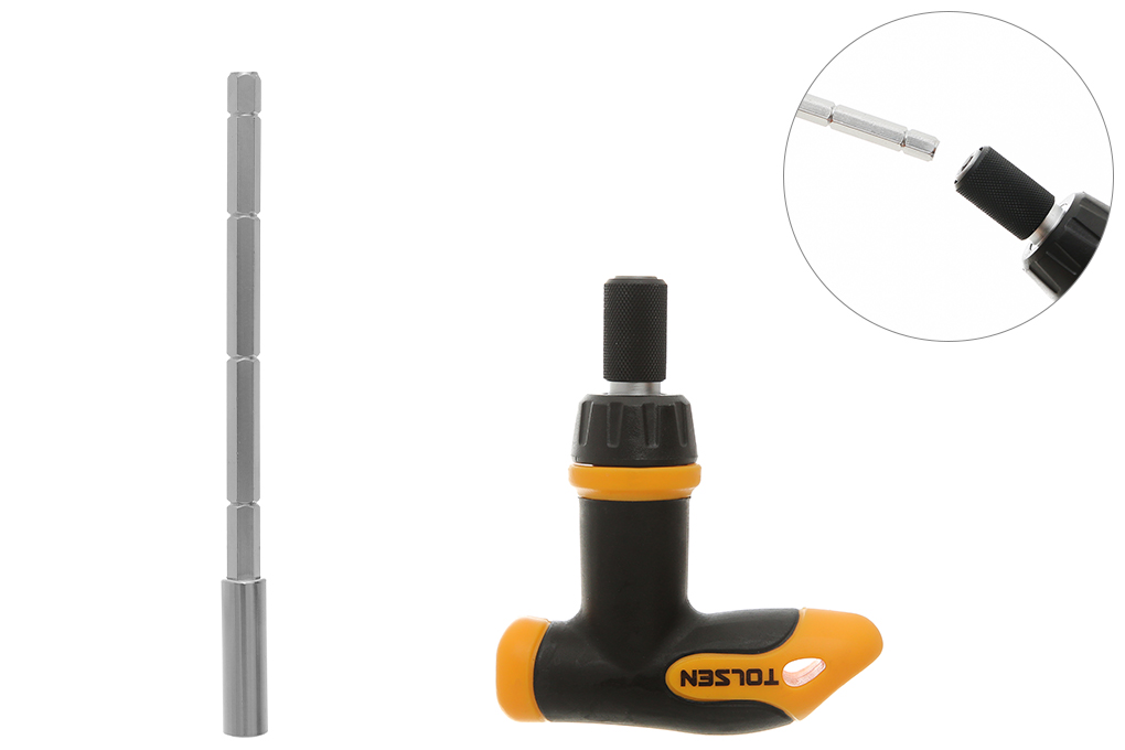Bộ Vít Típ Tolsen 20036 sở hữu tay cầm chuyển đổi được bọc bên ngoài bởi lớp nhựa dẻo dai, chống trơn trượt khi cầm nắm, tạo cảm giác chắc chắn, linh hoạt. Cùng thanh kéo dài với kích thước 140 mm, giúp ứng dụng được vào nhiều công việc khác nhau.