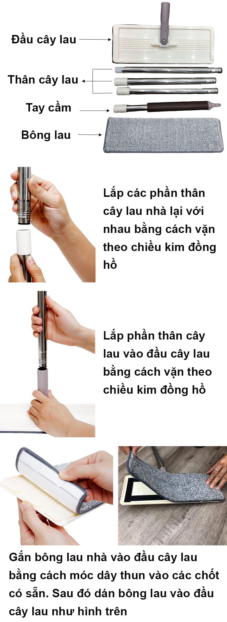 Bông lau có kích thước dài 32 cm và rộng 12 cm có thể tháo rời.