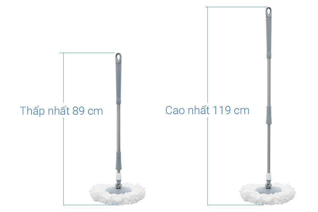 Phần thân cây lau sử dụng chất liệu inox chống gỉ chắc chắn. Bạn có thể thay đổi chiều cao thân cây từ 89 - 119 cm, hỗ trợ tối đa trong quá trình lau dọn mà không gây mỏi tay.