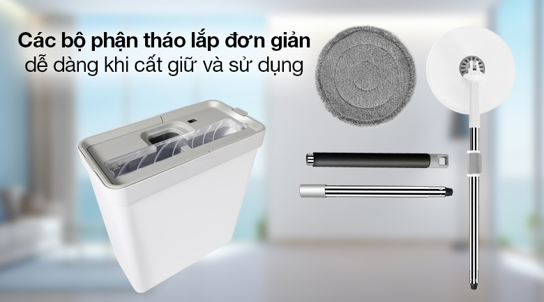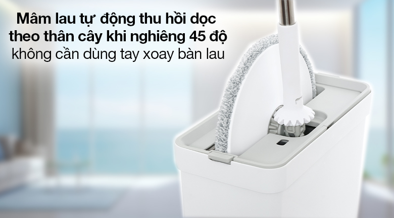 Bạn không cần phải dùng tay để xoay dọc bàn lau và đặt vào thùng giặt, thao tác thêm nhẹ nhàng.