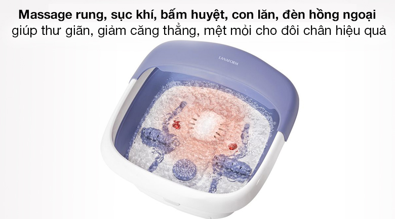 Bồn ngâm massage chân Lanaform LA110416 với thiết kế nhỏ gọn, tiện lợi, tích hợp nhiều chức năng massage, là dụng cụ massage chân tiện nghi dành cho khách hàng mọi lứa tuổi, bạn không cần phải đi đến tiệm spa mà vẫn được xoa bóp đôi chân một cách thoải mái ngay tại nhà.