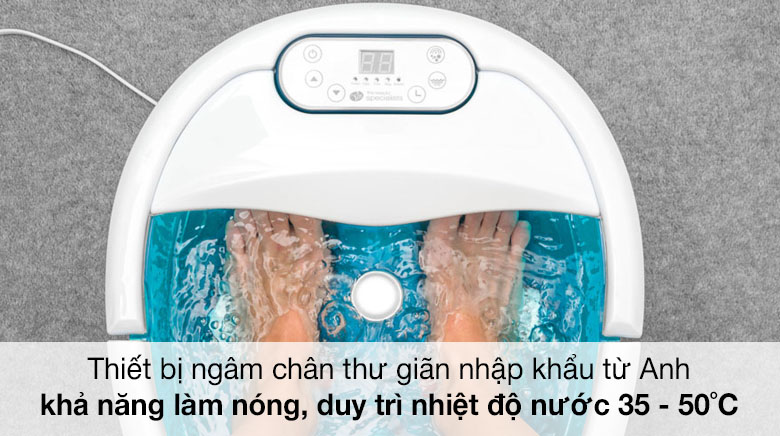 - Ngồi xuống, đặt chân vào bồn ngâm chân.