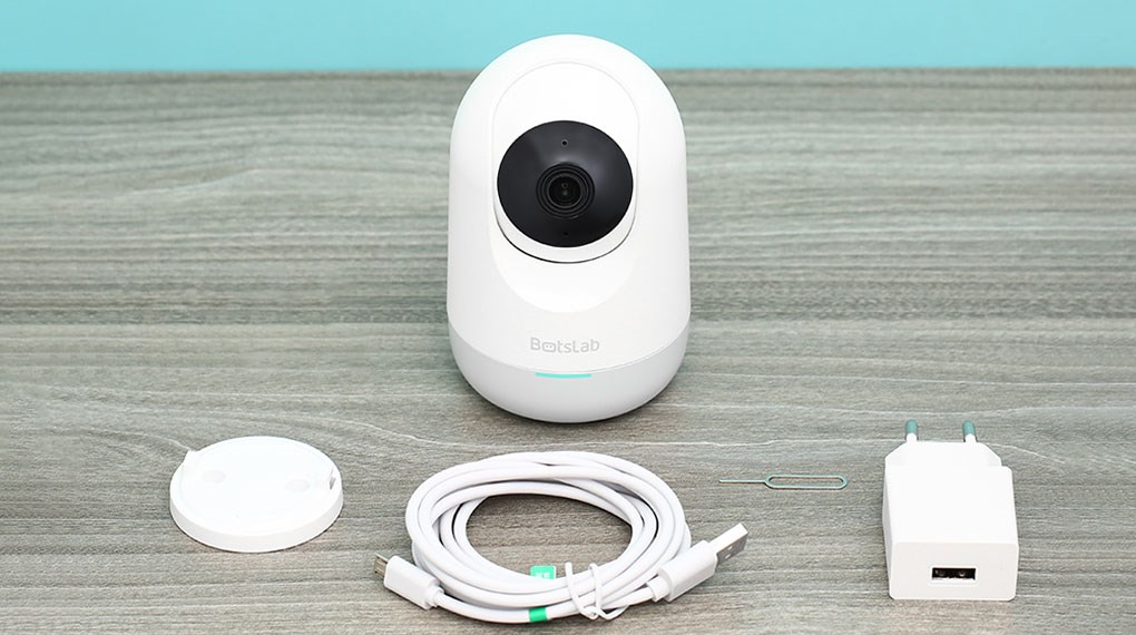 Camera có diện mạo thời thượng, màu trắng sang trọng, thiết kế gọn nhẹ với khối lượng chỉ 0.3 kg, phù hợp để lắp đặt trong nhà ở các vị trí như: Trên tường, kệ bàn,... Phía trước camera có in logo hãng Botslab, phía mặt sau camera trang bị 1 cổng micro USB để cắm cáp nguồn và 1 cổng LAN hỗ trợ kết nối với mạng.
