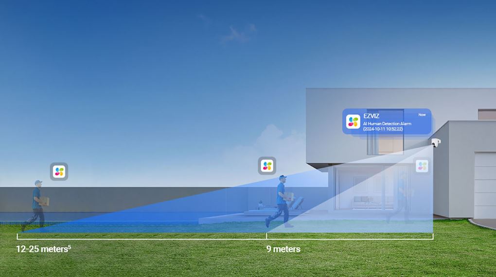 Ezviz HB8C tích hợp công nghệ trí tuệ nhân tạo (AI) tiên tiến để tối ưu hóa khả năng bảo vệ. Tính năng phát hiện dáng người giúp camera phân biệt chính xác giữa chuyển động của con người và các yếu tố không quan trọng, giảm thiểu đáng kể cảnh báo giả. Khi phát hiện đối tượng đáng ngờ, camera 4 MP không chỉ tự động theo dõi chuyển động mà còn có khả năng kích hoạt còi báo động và đèn chớp để chủ động răn đe kẻ xâm nhập ngay lập tức, biến camera thành một "người gác cổng" cảnh giác.