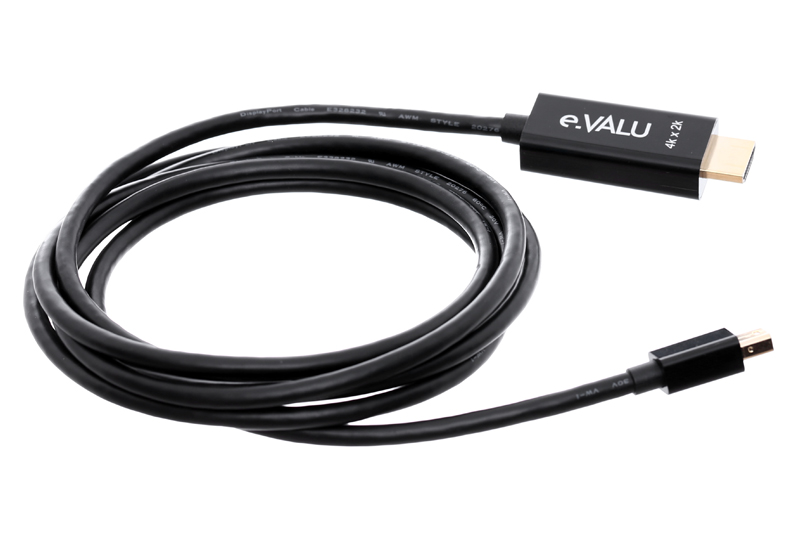 Cáp chuyển eValu PS8402A bao gồm 1 đầu Mini Display Port và 1 đầu HDMI giúp cho các laptop, tivi chỉ có cổng Display Port xuất hình ra màn hình, máy chiếu chỉ có cổng HDMI.