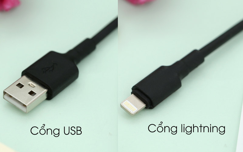 Cổng kết nối của dây cáp là cổng lightning tương thích với hầu hết các thiết bị của Apple như iphone 5, 5s,....