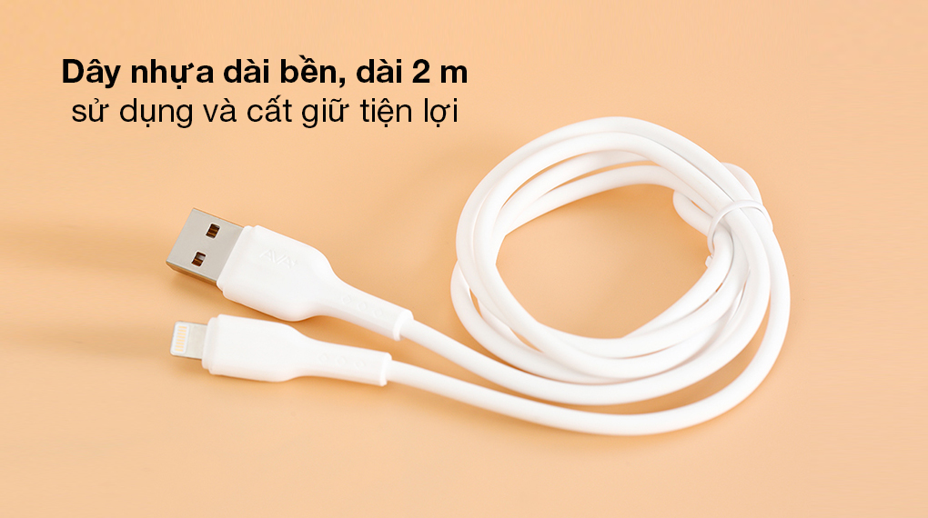 Mẫu cáp sạc Lightning AVA+ Kalf có độ dài 2 m, hỗ trợ 2 đầu ra/vào là Lightning/USB, kết nối đa thiết bị, dòng sạc 10 W và có thể truyền dữ liệu mượt mà là phụ kiện thiết yếu mà bạn nên lựa chọn để nâng cao trải nghiệm các thiết bị thông minh thời đại 4.0 tốt hơn.