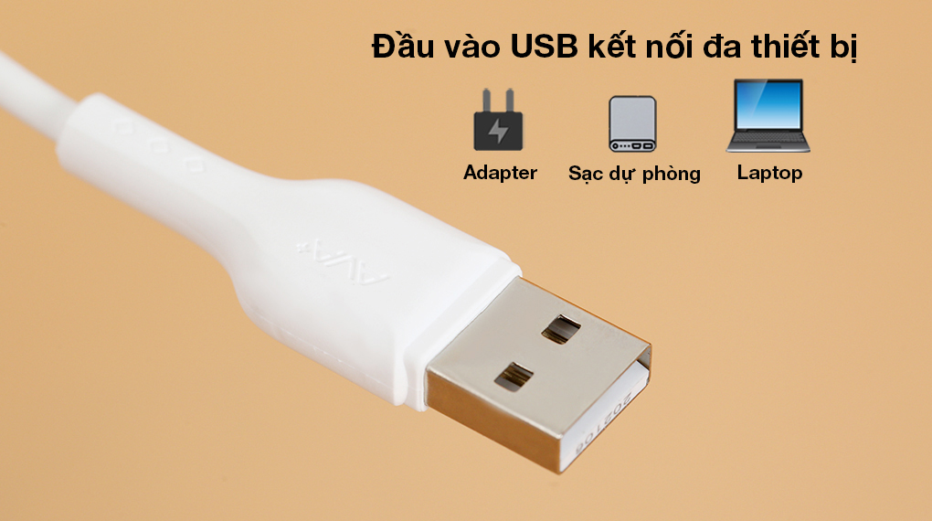 Giao tiếp USB cho nguồn vào giúp tăng độ tương thích của cáp sạc AVA+ với các thiết bị đang được phân phối rộng rãi trên thị trường như laptop, adapter sạc, sạc dự phòng,...