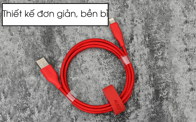 Cáp Lightning MFI 1.2m AUKEY CB-AL1 đỏ có thiết kế đơn giản cùng màu đỏ nổi bật, dây dù bên ngoài giúp cho cáp chống gập, hạn chế hư hỏng