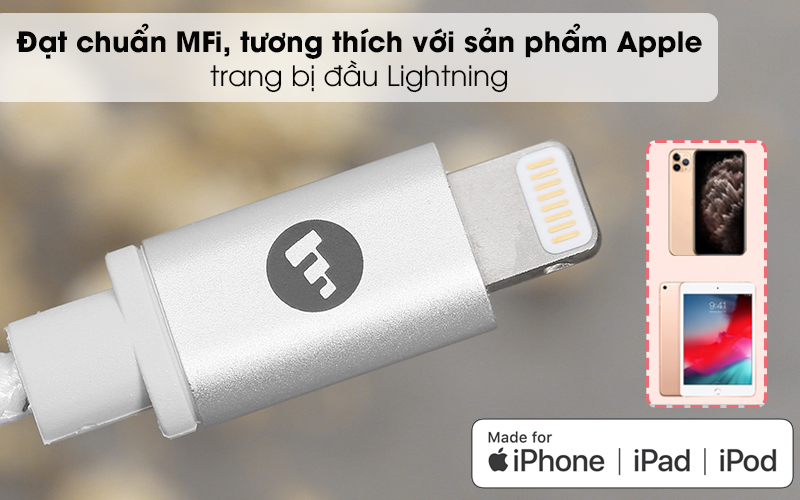Chứng nhận MFi (Made for iPhone, iPad, iPod) đảm bảo dây cáp Mophie phù hợp 100% với các thiết bị Apple, kết nối dễ dàng, sử dụng an toàn, hạn chế chai pin.
