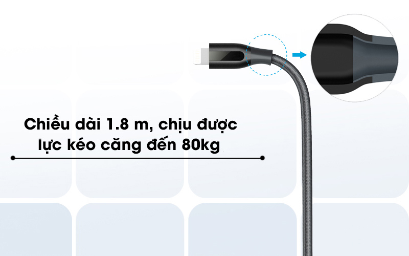 - Cáp dài 1.8 m, có thể sạc thiết bị ở khoảng cách tương đối xa.