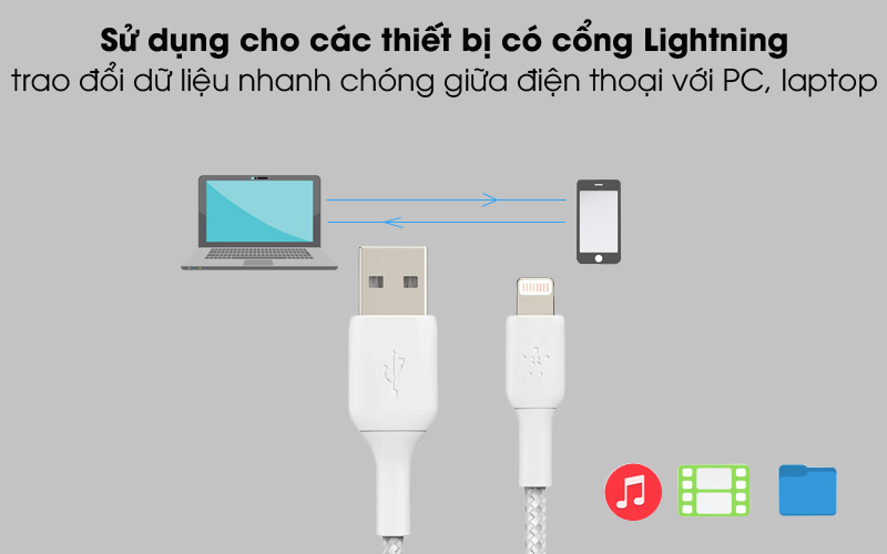 Trao đổi dữ liệu hình ảnh, tài liệu, file nhạc nhờ kết nối cáp sạc Lightning giữa điện thoại với laptop, PC. Tốc độ kết nối nhanh, ổn định, thao tác sao chép đơn giản, an toàn, thật tiện lợi để sử dụng.