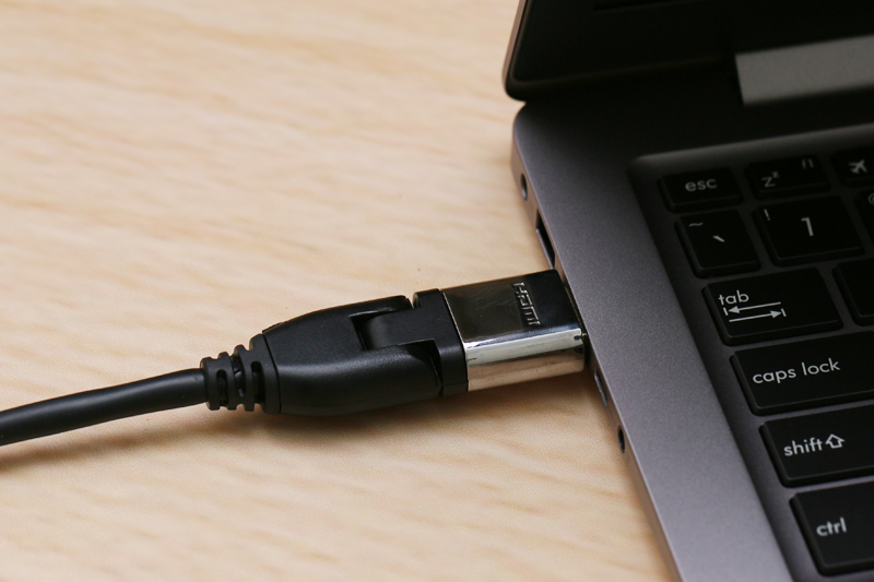 Nhờ sự linh hoạt này, bạn có thể điều chỉnh hướng dây cáp sao cho không cảm thấy vướng víu. Chẳng hạn, khi bạn kết nối laptop với tivi qua cổng HDMI, tivi để trên cao mà laptop lại để dưới thấp. Lúc này bạn có thể bẻ đầu cáp lên giúp kết nối thuận tiện.