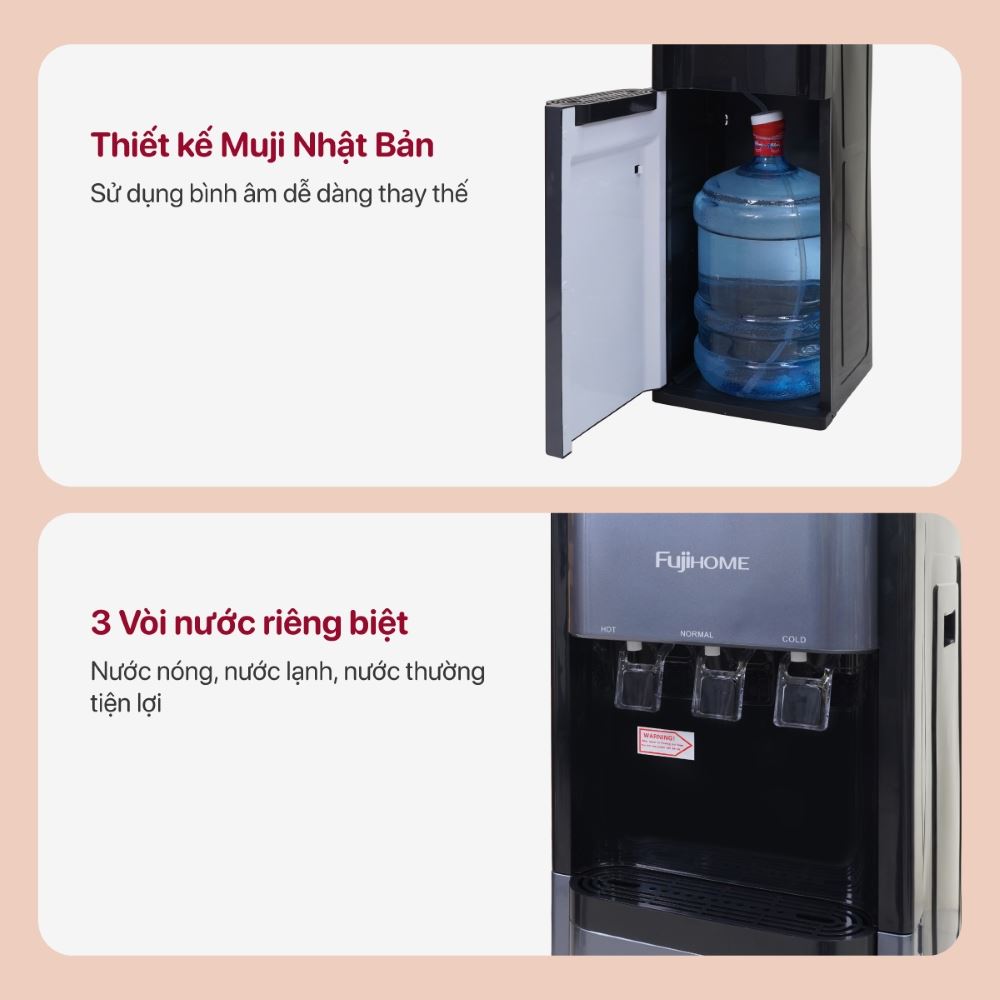 Cây nước nóng lạnh FUJIHOME WD211UE 575W là giải pháp tiện lợi cho mọi nhu cầu về nước uống hàng ngày, mang đến nguồn nước nóng, lạnh và nguội nhanh chóng chỉ trong một thiết bị. Với thiết kế hiện đại cùng nhiều tính năng ưu việt, sản phẩm này hứa hẹn nâng tầm trải nghiệm sống của bạn, phù hợp cho gia đình và văn phòng nhỏ.