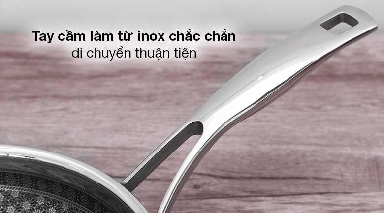 Tích hợp ở cuối tay cầm có lỗ treo cho bạn bảo quản chảo gọn gàng, tiện lợi.