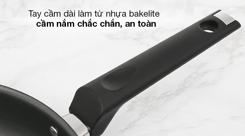 Cầm nắm vững vàng, không sợ tuột tay khi di chuyển, hơn nữa với khối lượng 1.04 kg cho bạn thao tác chiên xào dễ dàng, không tạo nhiều áp lực cho cổ tay khi nấu ăn.