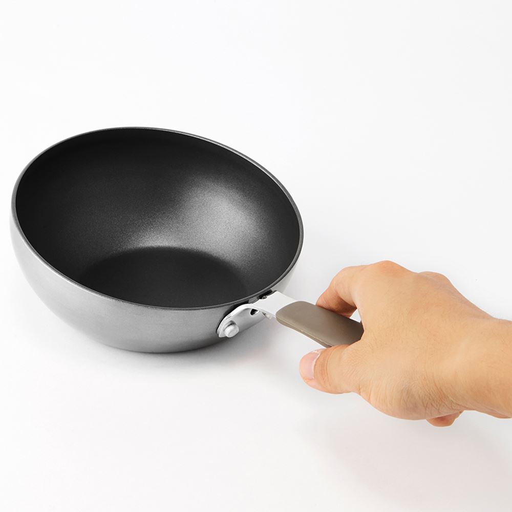 - Thiết kế chảo dạng đáy tròn, sâu và thành chảo cao bất đối xứng, có độ dốc giúp giữ nhiệt tốt, hạn chế dầu mỡ bắn ra ngoài cũng như dễ dàng đảo thức ăn trong khi chiên xào.