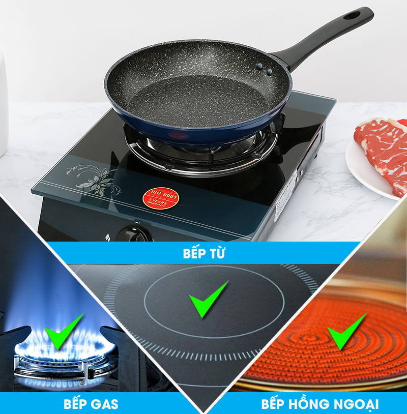 • Chảo dùng được trên mọi loại bếp thích hợp cho nhiều hộ gia đình.