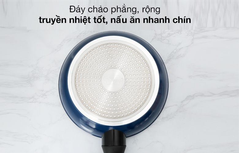 Đáy chảo phẳng, rộng, truyền nhiệt tốt, nấu ăn nhanh chín