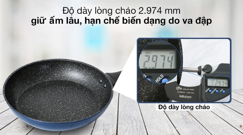 Độ dày lòng chảo 2.974 mm giúp giữ ấm lâu, hạn chế biến dạng do va đập