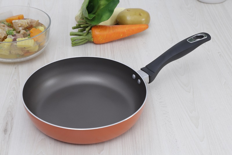 Chảo chống dính Delites CTE 24 cm sản xuất tại Việt Nam, chất lượng tốt. Sơn phủ bên ngoài chảo màu cam đỏ nổi bật.