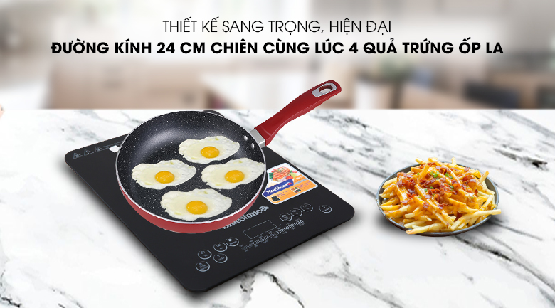 Bề mặt rộng, có thể chiên 4 quả trứng ốp la cùng lúc đáp ứng nhu cầu nấu ăn cho gia đình 2 - 4 người.
