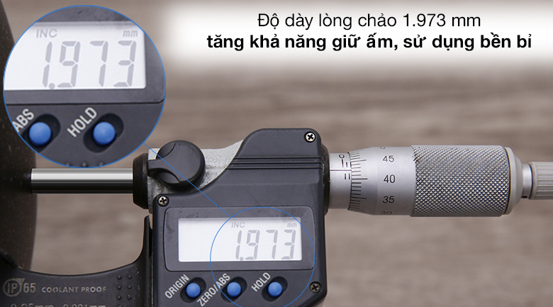 Khối lượng 1.1 kg, tay cầm bằng inox dạng rỗng, giúp hạn chế nóng khi cầm.