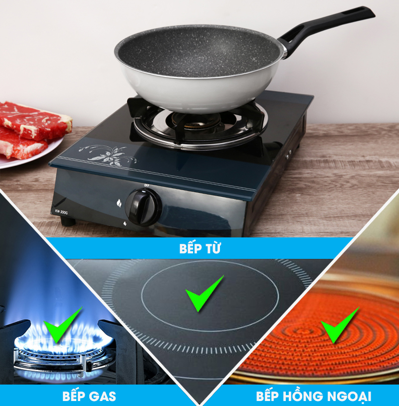 Chảo có thể sử dụng trên bếp từ, bếp hồng ngoại, bếp ga