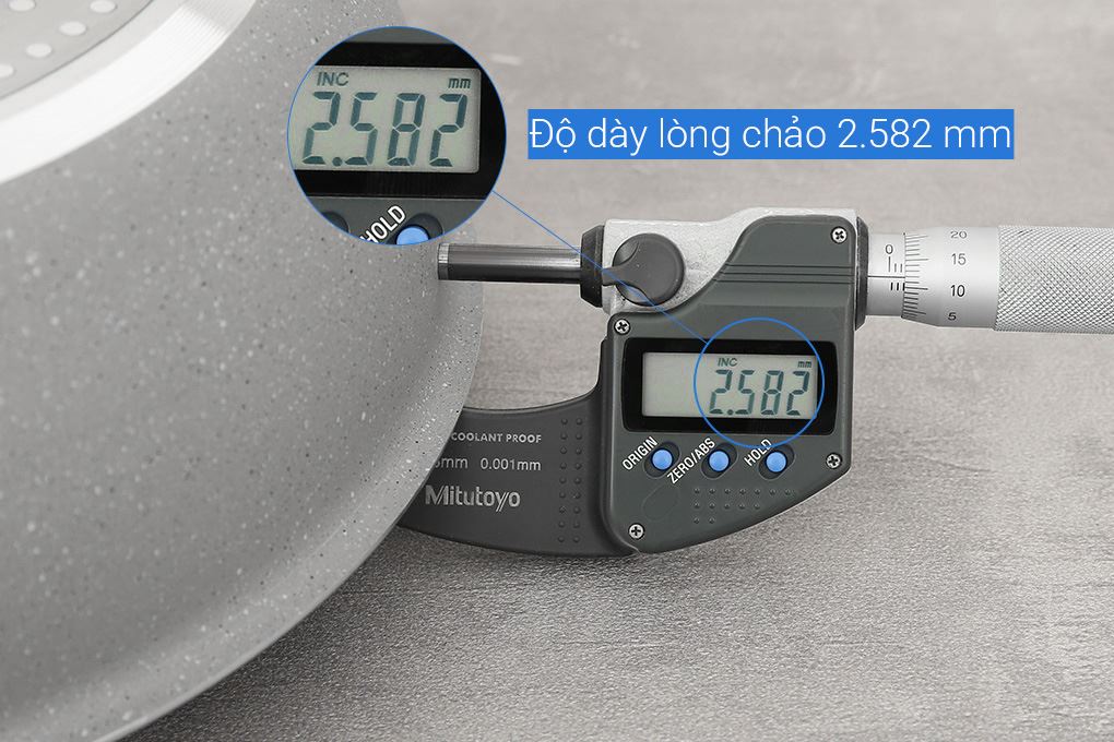 Đường kính 28 cm, lòng chảo sâu, chiên được 4 đùi gà cùng lúc.