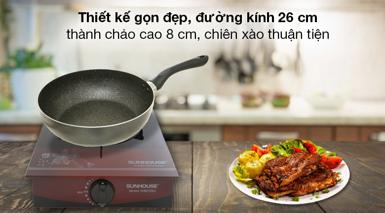 Chảo nhôm sâu chống dính đáy từ 26 cm Sunhouse SHS26MB của thương hiệu Sunhouse, sản xuất tại Việt Nam, mẫu chảo lòng sâu đẹp, chiên xào thuận tay, an toàn, được nhiều người tin dùng.