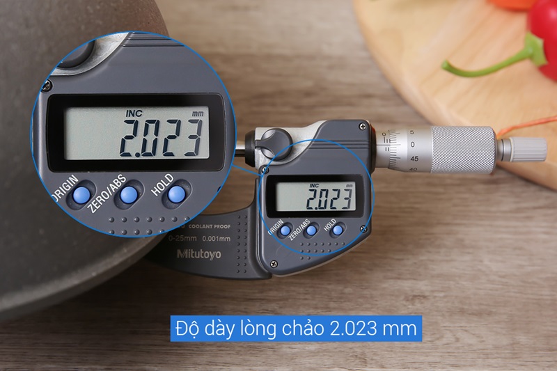 Khối lượng chảo 1.075 kg, tạo cảm giác chắc chắn khi cầm nắm, thuận tiện di chuyển khi nấu nướng.