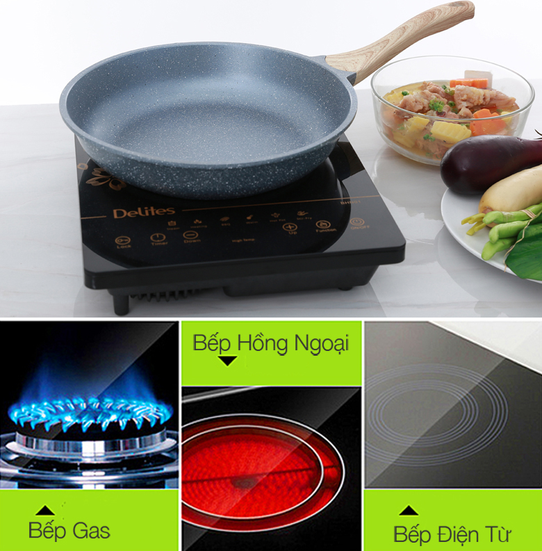 Chảo chống dính đáy từ 24 cm Delites 001CWS bền tốt, dùng tiện lợi, nấu ăn ngon, giá phải chăng dễ tiêu dùng.