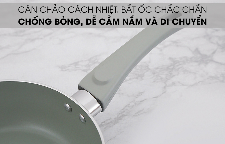 Bề mặt chảo phủ lớp chống dính Whitford Quantanium chịu nhiệt tối đa 420°C hạn chế thức ăn dính cháy, dễ làm sạch sau khi sử dụng.
